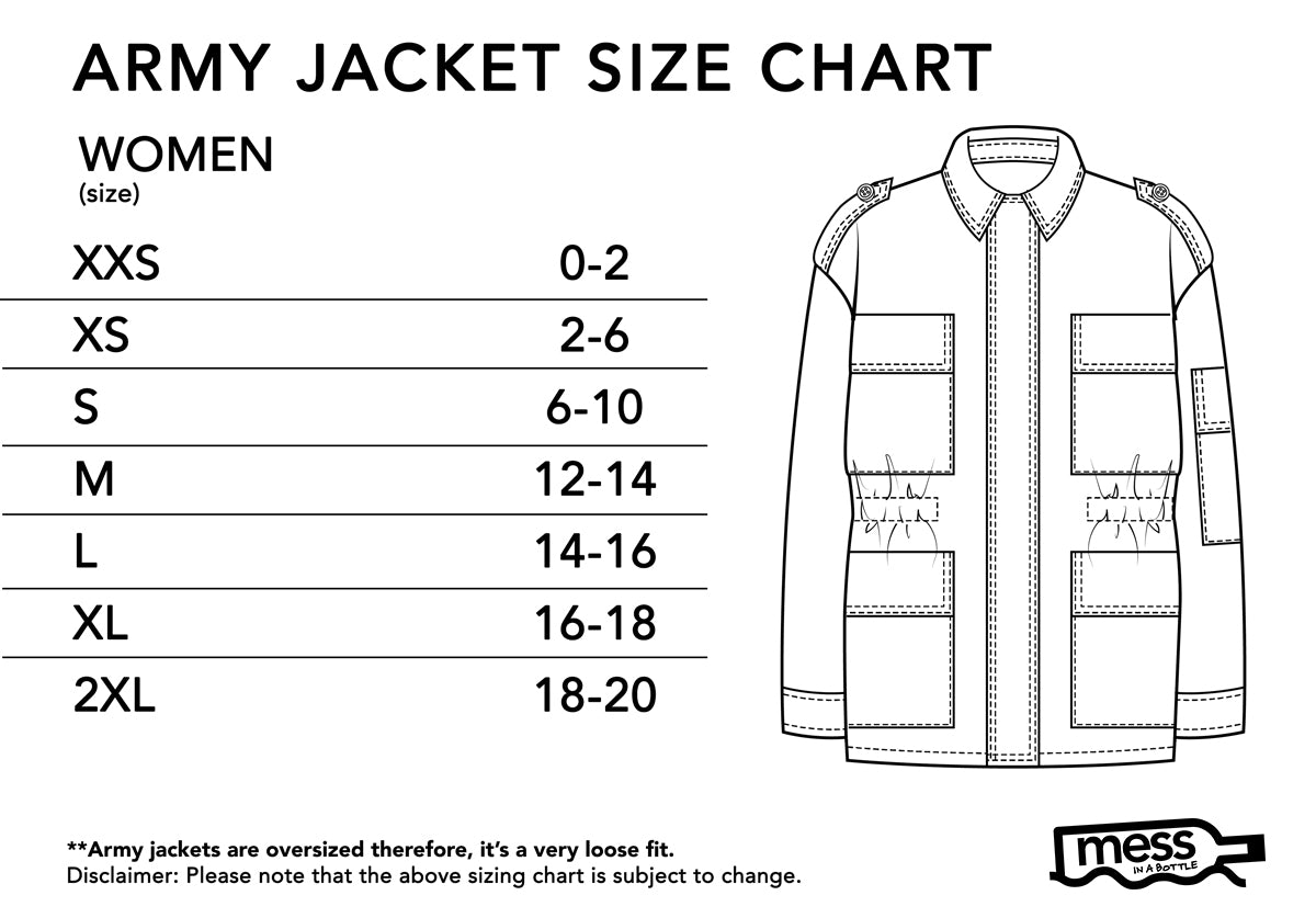 Please note sizes vary depending on bust size of the woman. Very loose fit style; army military, traditional.